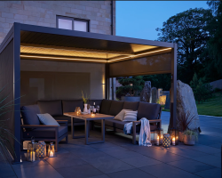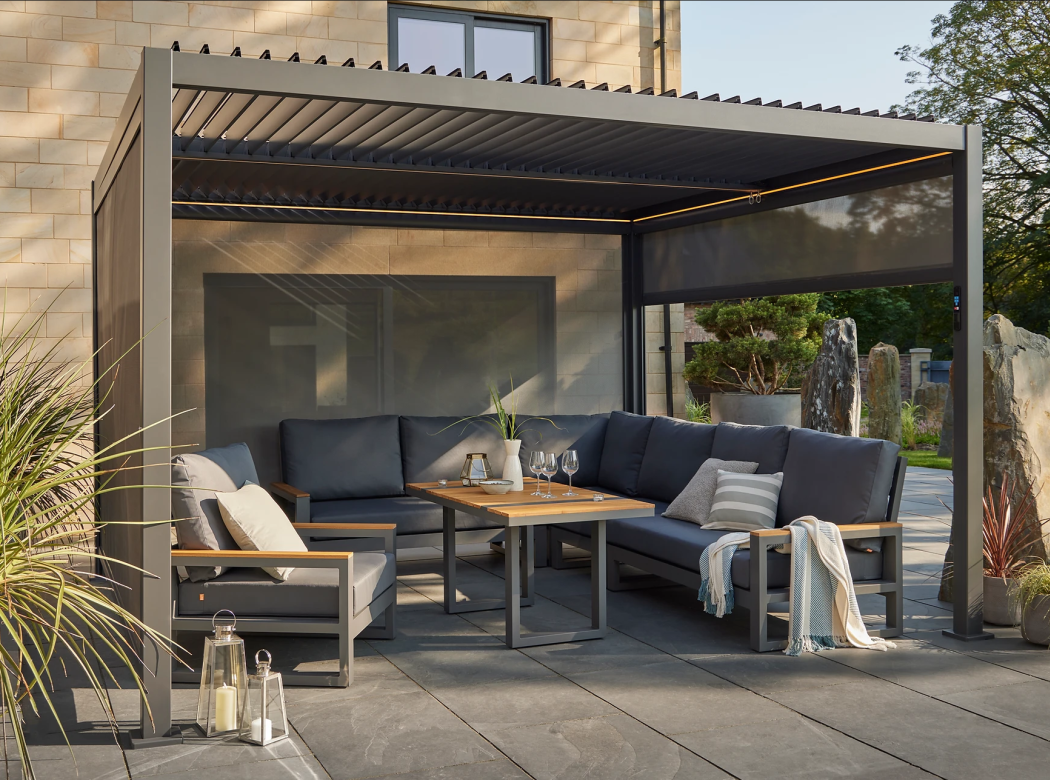 The Royce Cube 4m x 3m Rectangular Aluminium Pergola – is designed to offer versatile, stylish shade from the sun or shelter from a rain shower. Its adjustable louvre roof lets you choose the right amount of cover, from full sunshine to shaded, 100% water-tight shelter. Unique to The Cube, the adjustable roof vanes are split 50/50, allowing separate control for each half of the pergola.
